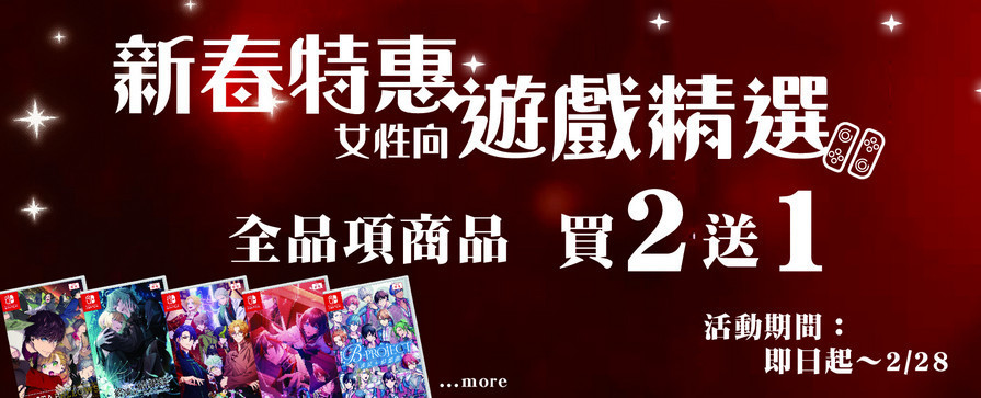1. 茶米電玩品牌商城2026感恩特選活動期間特選 Switch乙女類 現貨新片遊戲買二送一(品項不得重複),不囉嗦特選 Switch乙女類 現貨品遊戲片任選三片(結帳付二片價錢)就送挑選三片其中最低價錢的一款(免費),買四送二以此類推,遊戲片品項不得重複,組合類算一款(以系統下單限制為主)。